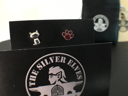 Cat and paw earrings Sterling Silver 925 - TSE057