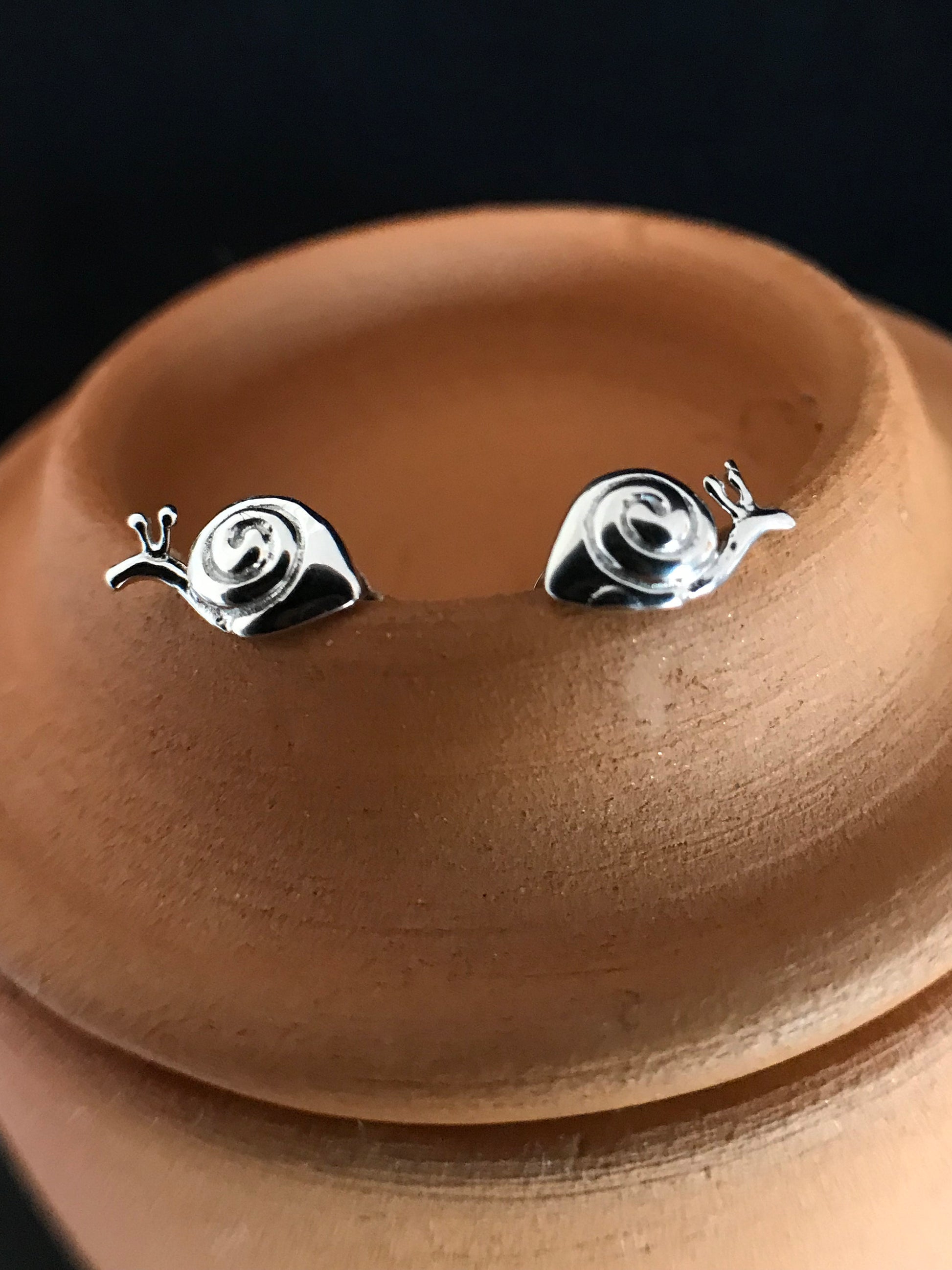 Rhodium plated snail earrings Sterling Silver 925 - TSE020